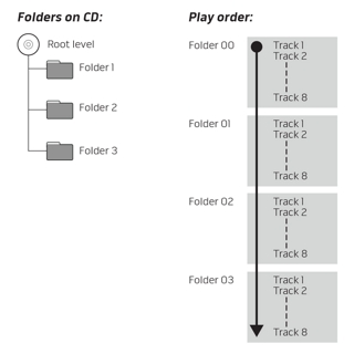Music files on an MP3 CD are played according to the folder structure on the disc. For example: