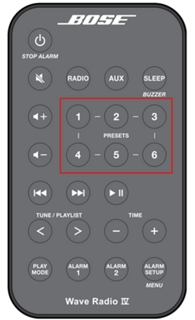 您最多可以儲存六個 fm 和六個 am 廣播電台,並使用「presets 」(預設)按鍵快速叫出。