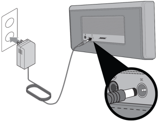 啟動新電池:將電源供應器插入位於揚聲器背面的直流電插口,然後插入交流電電源插口三個小時。
