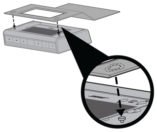 將新蓋上的孔與揚聲器背部的螺栓對齊,然後按壓蓋子,將其扣上。